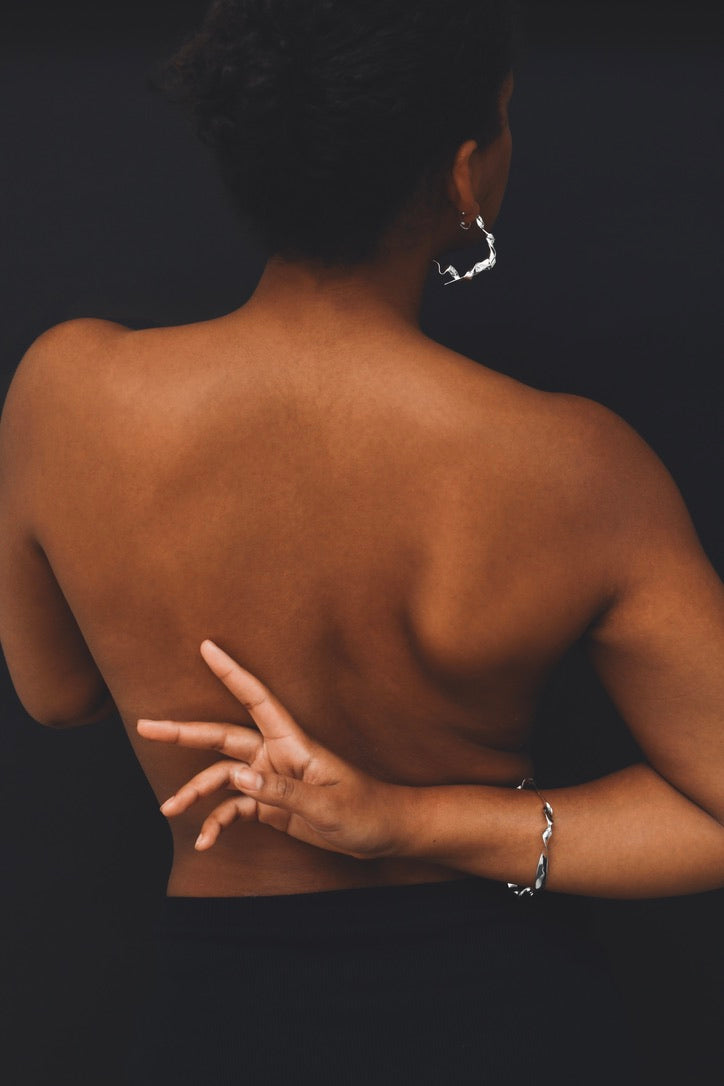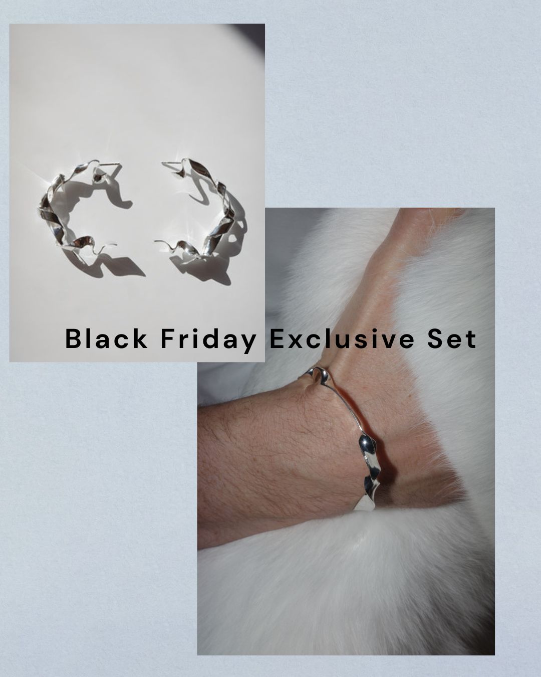 The hoops offer a soft, reflective glow, while the bangle traces a quiet, fluid contour around the wrist — a refined combination for celebrations, gatherings, or elevating everyday style.