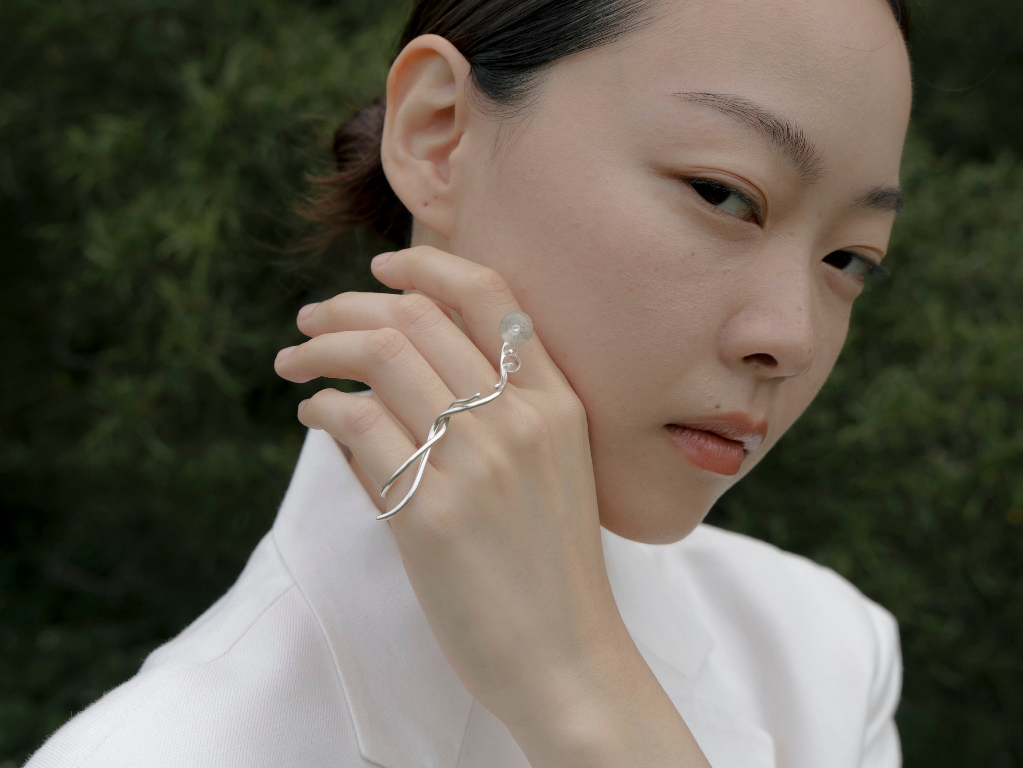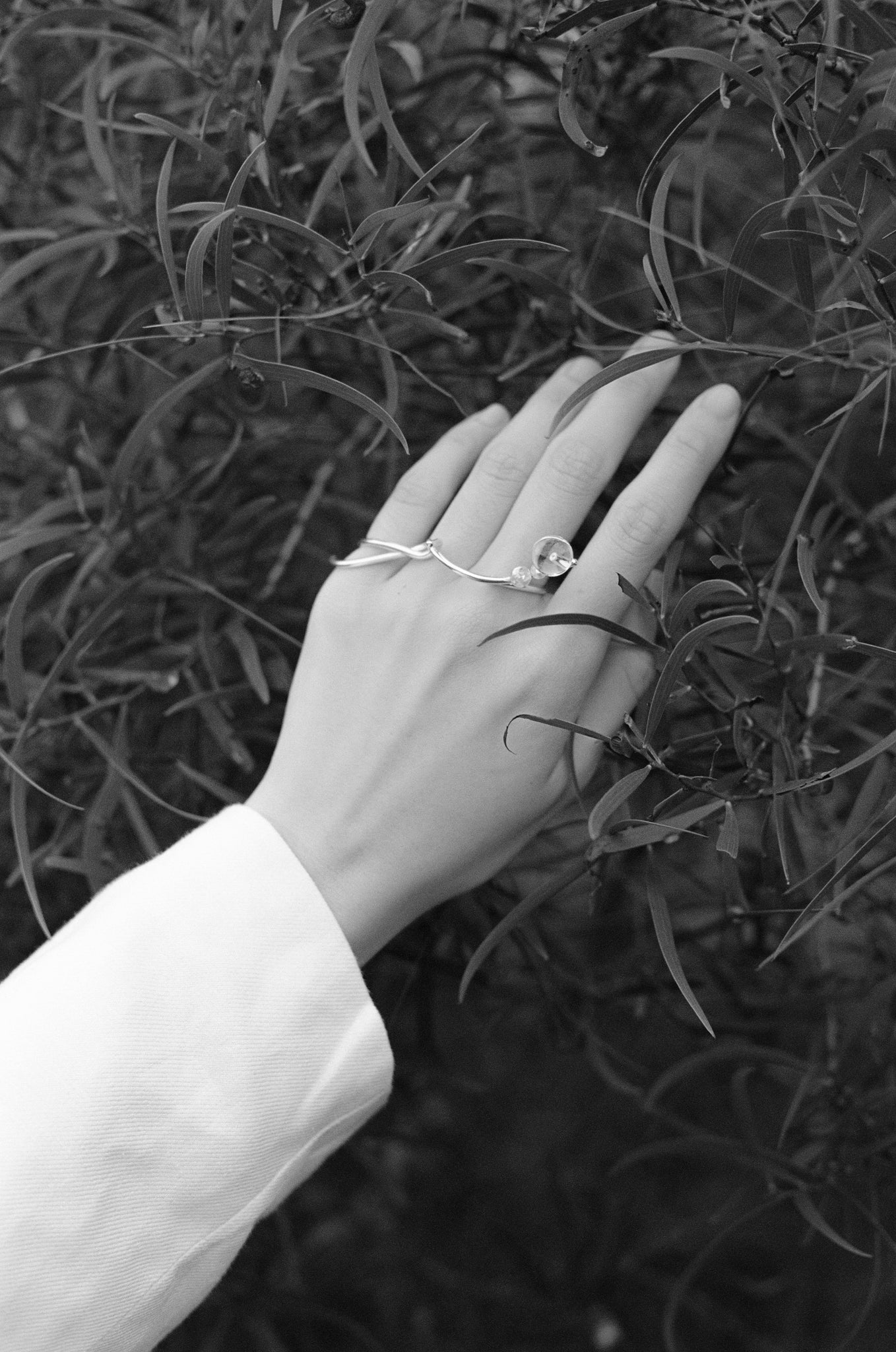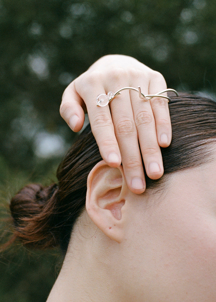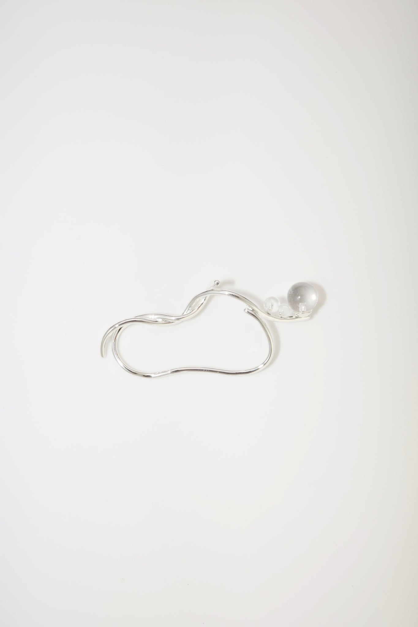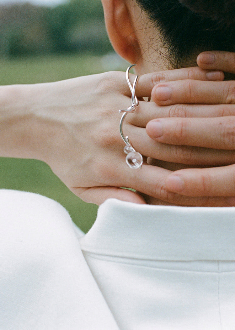 Line of Bloom curves like petals suspended in air — silver arcs layered into a form that hovers, not in bloom, but becoming. A quiet gesture drawn in softness.