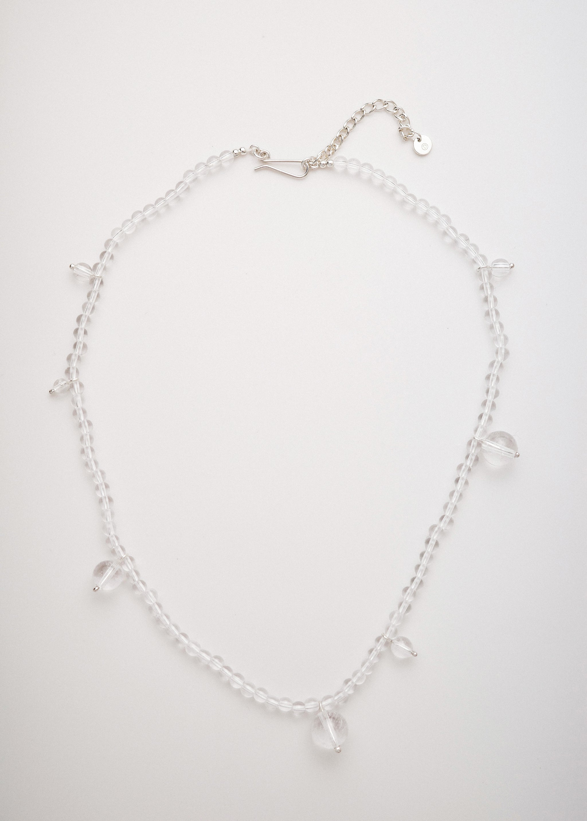 a single crystal suspended from a fine silver chain.